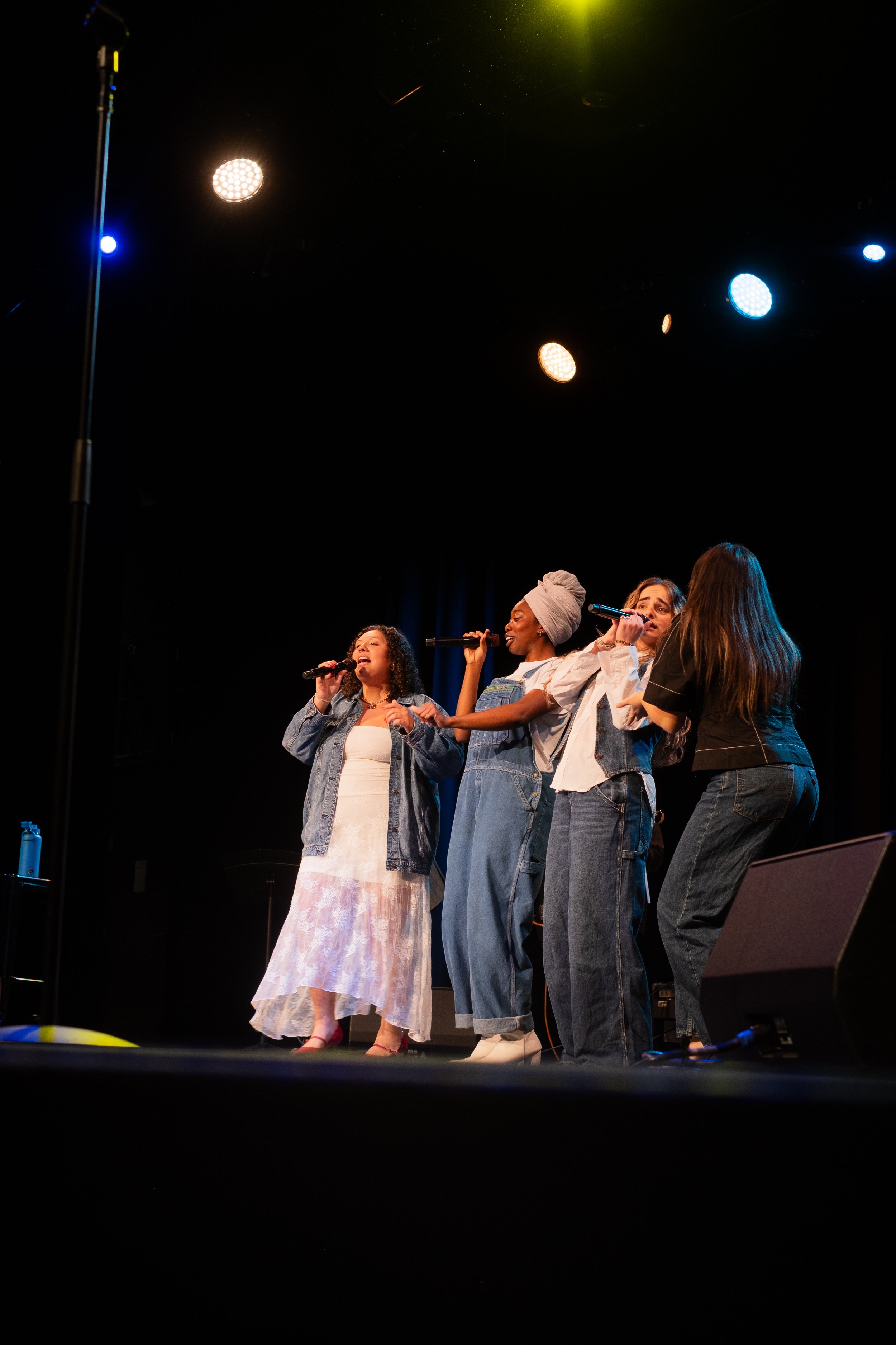 Backstage at the Hip Hop and R&B Showcase, singing BGVs for artist Jack Corcoran, in the Fisher Center for the Performing Arts.